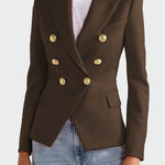 Impressionante blazer com um corte que abraça a silhueta e destaca o estilo. Apresenta um elegante colarinho com lapela, fecho duplo à frente com botões e dois bolsos laterais com aba. O seu design intemporal torna-o ideal tanto para apresentações profissionais como para saídas à noite, oferecendo confiança e sofisticação em qualquer ocasião.