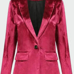 Um impressionante casaco com textura de veludo que confere luxo e elegância a cada look. O seu colarinho clássico, em combinação com o botão único na parte da frente, cria um equilíbrio entre o estilo atemporal e o moderno. Ideal para saídas noturnas ou ocasiões especiais.