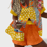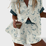 A camisa de corte descontraído e os calções curtos criam uma silhueta moderna e delicadamente feminina. Perfeito para escapadas, momentos descontraídos ao sol ou passeios urbanos que pedem conforto com estilo.