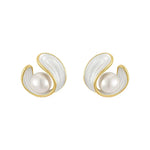 Brincos brancos exclusivos em opala e pérolas, com acabamento em ouro elegante, são a escolha perfeita para quem busca sofisticação discreta.