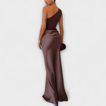 Concebido para deslumbrar com subtileza, o vestido Luna redefine o glamour moderno. A sua silhueta de um ombro só, em cetim fluido, é perfeita para casamentos, festas ou jantares especiais em que se pretende exalar confiança e estilo sem esforço.