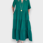 Sente-te confiante e naturalmente sofisticada com o Vestido Maxi Carlota. Com um corte em A fluido, design em camadas e um tecido leve e respirável, este vestido foi pensado para te acompanhar em qualquer ocasião — dos passeios ao sol aos jantares descontraídos. O decote em V e as mangas curtas equilibram feminilidade e conforto, criando uma silhueta que favorece todos os corpos. Um essencial versátil para os dias em que queres estar impecável... sem esforço.
