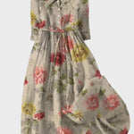 Este vestido longo em tons terrosos com padrão floral combina elegância clássica e frescor natural. Seu design envolve suavemente o corpo, enquanto o cinto na cintura garante uma silhueta feminina e bem definida. Um vestido que traz primavera e harmonia para todas as suas ocasiões.