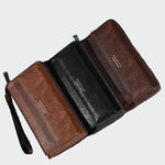 Elegante carteira masculina em tom preto, com design minimalista e prática alça de pulso para transporte fácil. Possui diversos compartimentos para cartões, dinheiro e moedas, oferecendo conforto e organização para o dia a dia. A textura de couro de alta qualidade e o logótipo discreto na parte frontal acrescentam um toque moderno e sofisticado. Um acessório que combina estilo e funcionalidade.