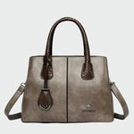 Elegante bolsa feminina em tom preto com detalhes marrons em textura de pele de cobra, que conferem um caráter luxuoso e um estilo distinto. O interior espaçoso a torna ideal para todas as necessidades diárias, enquanto a alça de ombro removível oferece versatilidade no transporte. Um acessório que combina praticidade e elegância atemporal.