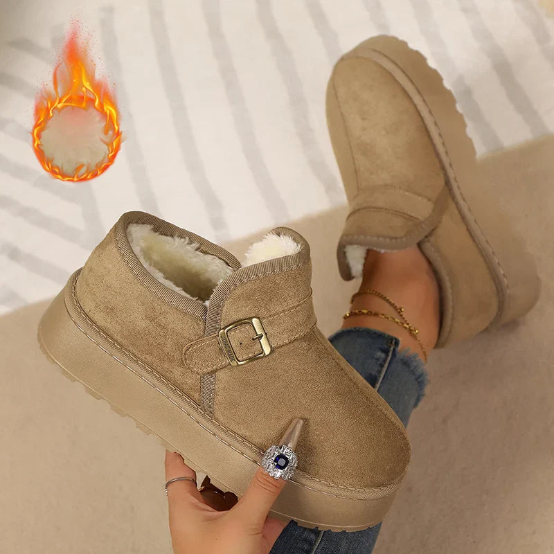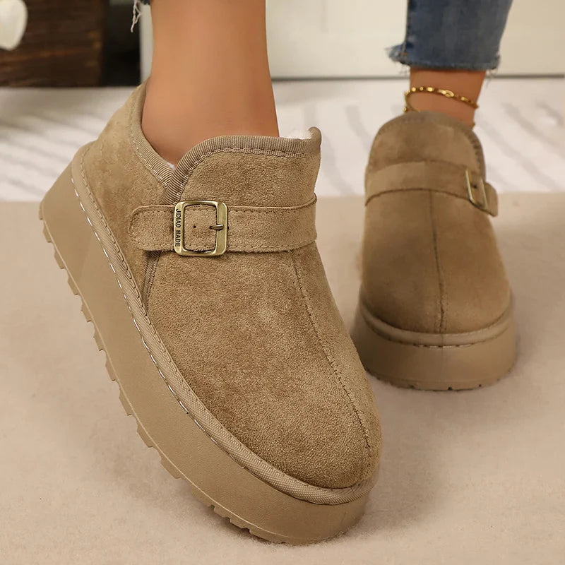 As Botas Aurora foram criadas para quem não abdica de estilo nem de conforto nos dias frios. Com o seu acabamento em camurça sintética, interior espesso em pelúcia e sola grossa antiderrapante, estas botas proporcionam calor, estabilidade e um toque moderno a qualquer look. Perfeitas para o dia a dia ou escapadelas de inverno, oferecem leveza e elegância em igual medida.