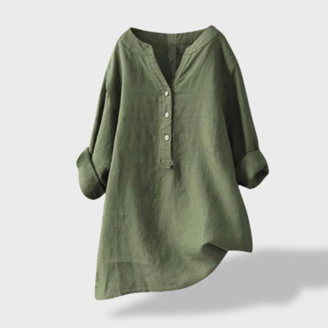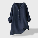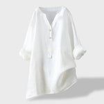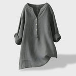 Feita com um tecido de linho leve e respirável, a Beatriz™|Camisa Leve de Linho para o Verão oferece o equilíbrio perfeito entre sofisticação descontraída e conforto diário. O seu corte solto, decote em V e botões delicados tornam-na uma peça versátil, ideal tanto para o dia-a-dia como para momentos mais especiais. A manga comprida com possibilidade de dobrar dá um toque prático e elegante. Uma escolha ideal para quem procura estilo, frescura e qualidade numa só peça.