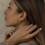 Os brincos Melissa são o acessório perfeito para complementar qualquer roupa, quer esteja a vestir-se bem ou a manter-se casual. Com o seu design de argola intemporal e acabamento moderno, estes brincos são o epítome da elegância sem esforço.