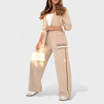 Este conjunto é a escolha perfeita para quem procura elegância sem abdicar do conforto. O blazer estruturado e as calças fluídas com detalhes modernos criam um equilíbrio ideal entre o clássico e o casual, adaptando-se a qualquer ocasião — do escritório a um passeio descontraído.
