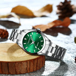 O mostrador em aço inoxidável polido e os detalhes minimalistas realçam a sua elegância sem sobrecarregar o seu visual. Com um movimento de quartzo discreto e uma bracelete durável, proporciona conforto e estilo ao longo de todo o dia.